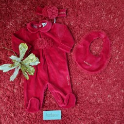 Tutina Nanàn rossa con fascia e bavetta